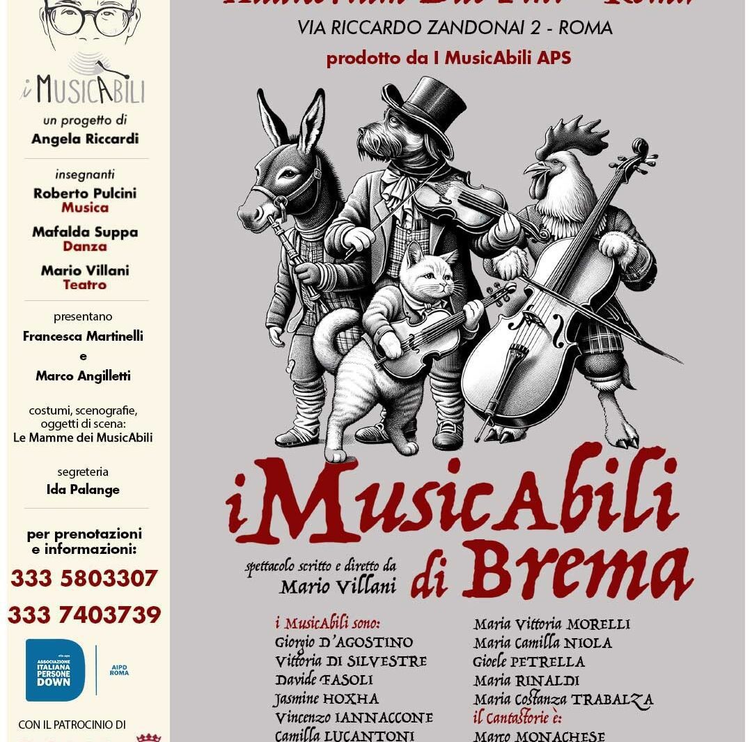 Arte, cultura e sociale animeranno il 4 ottobre alle ore 21.00 l’Auditorium “Due Pini” di Roma dove andrà in scena lo spettacolo “I MusicAbili di Brema”, un talentuoso show scritto e diretto dal regista Mario Villani che ha come protagonisti giovani artisti con e senza disabilità.