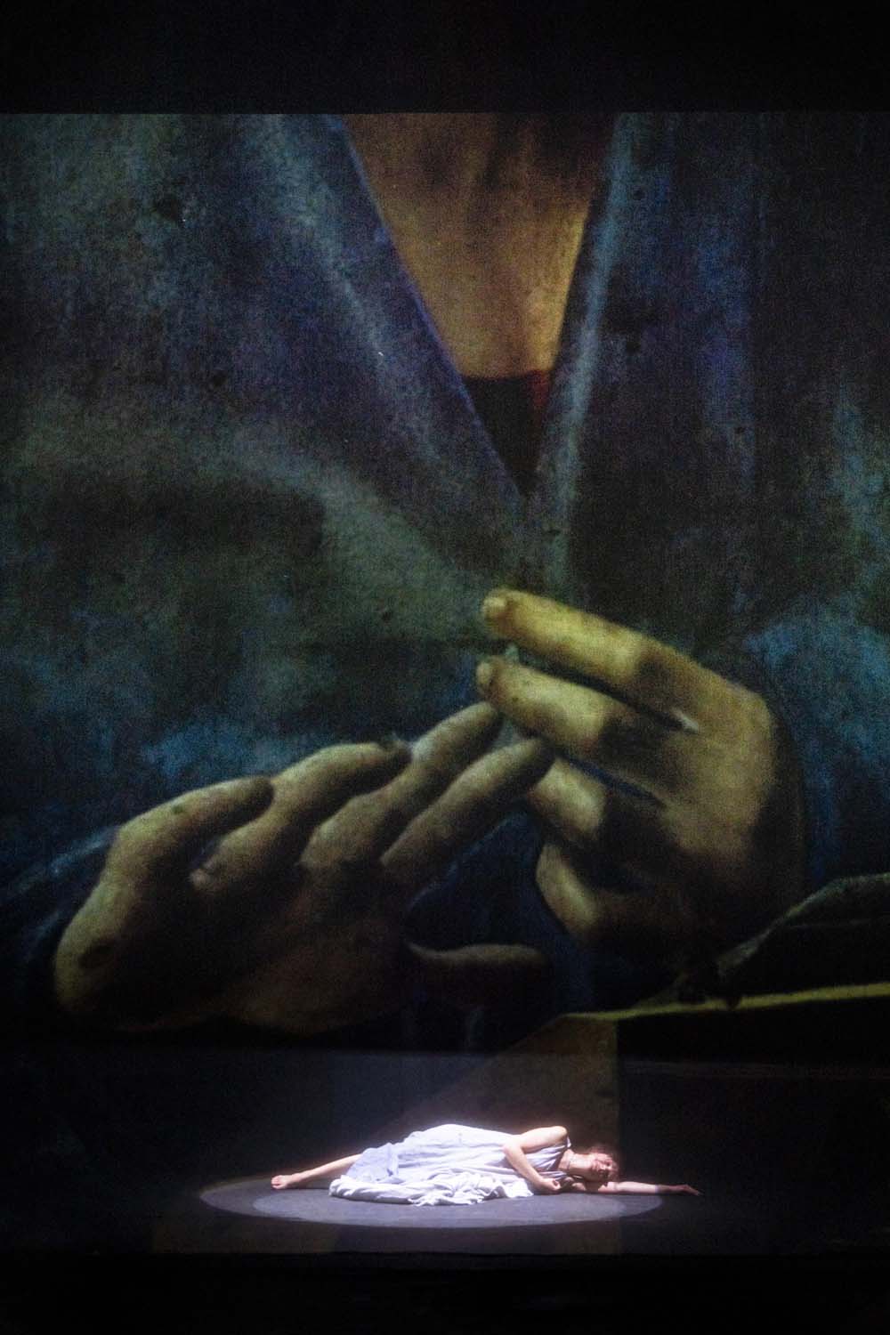 Le videoproiezioni e la musica, elementi fondamentali per rendere e comunicare l'angoscia opprimente, i tormenti dell'animo, la disperazione che opprime.