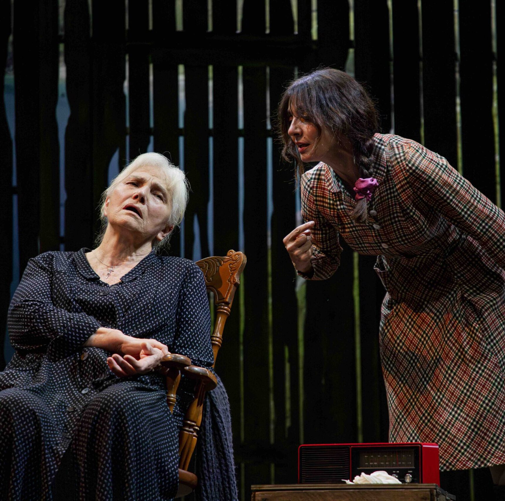 Si parla anche attraverso una scenografia scarna: un tavolo e due sedie, un lavello e una sedia a dondolo che è il centro, la sedia di Mag-la madre, il perno intorno a cui gira lo spettacolo-
