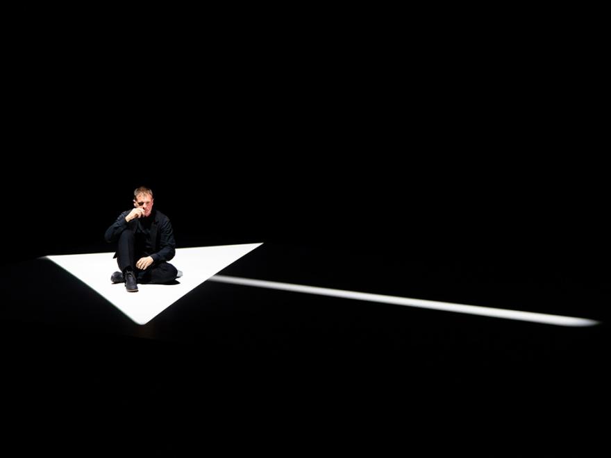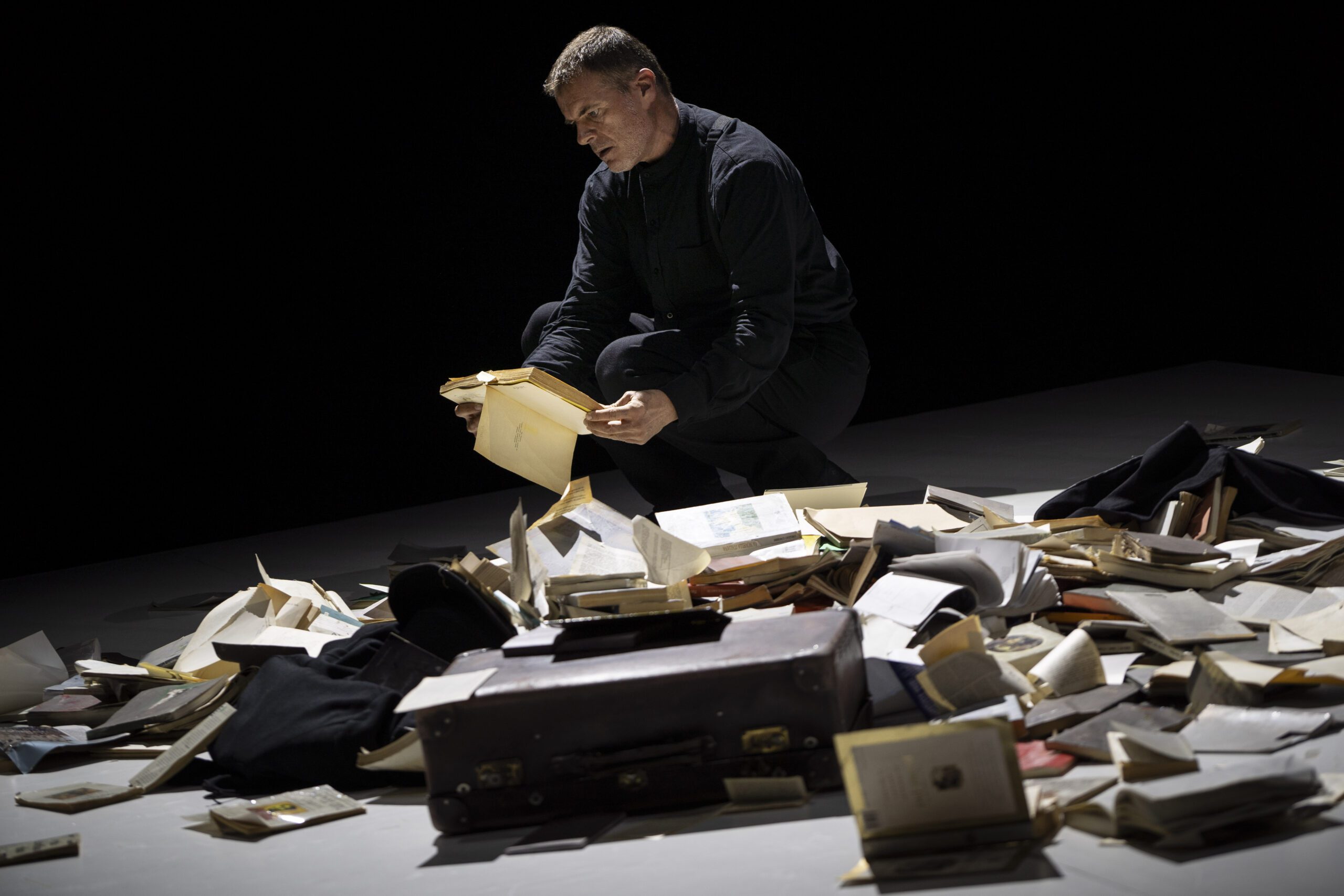 La scenografia quasi assente e un sapiente disegno di luci danno dinamicità e intensità al monologo.