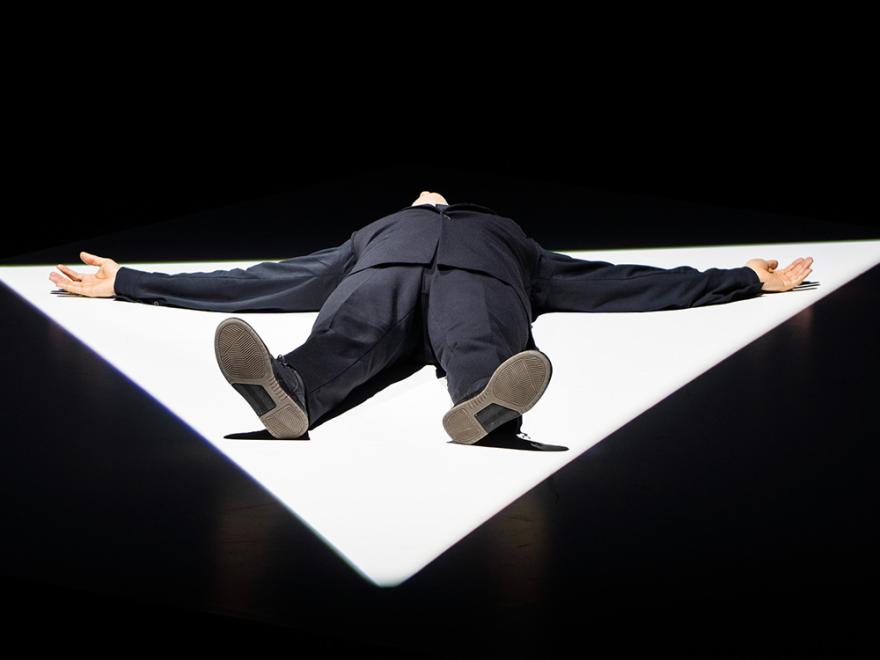 Le luci che passano da illuminare tutta la pedana a disegnare con la luce piccoli spazi, angoli o triangoli, quasi delle croci, creano stanze dell’animo.
